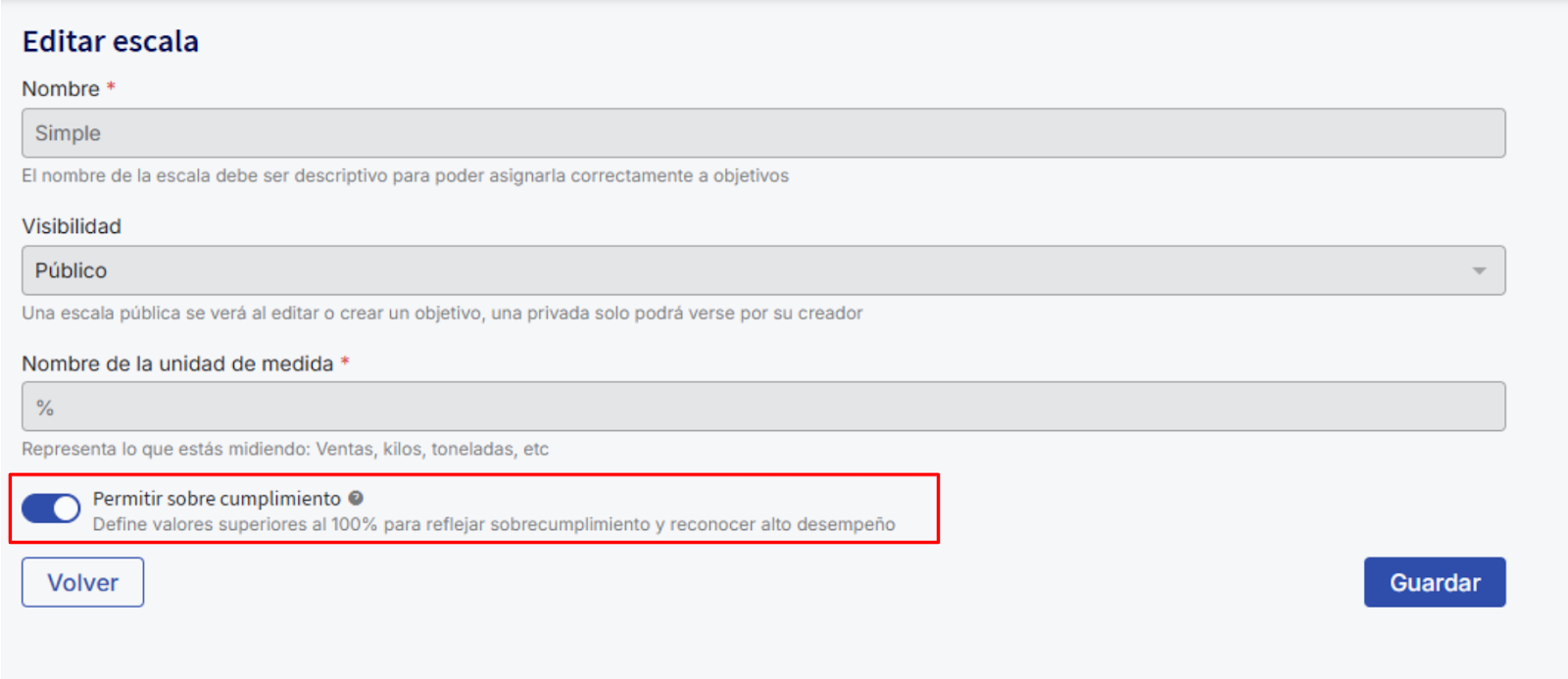 💡Remember that you can also edit the simple scale to accept overachievement. To do this: