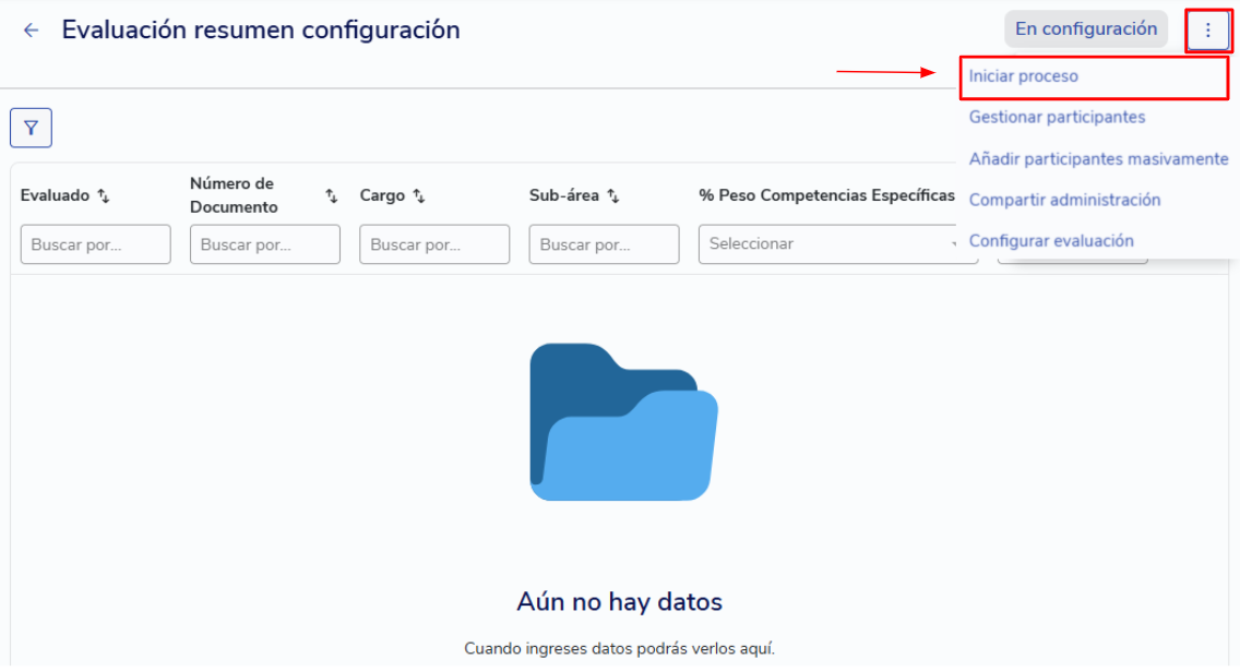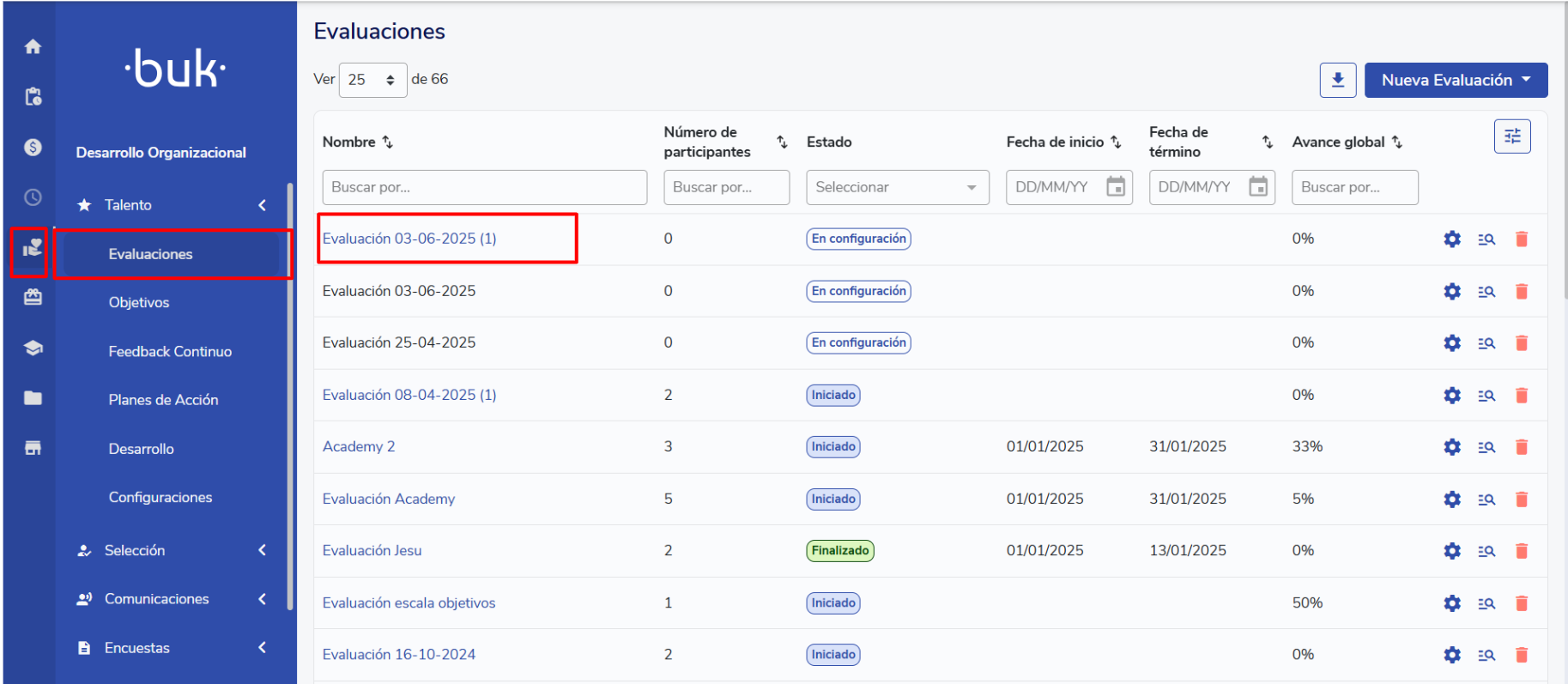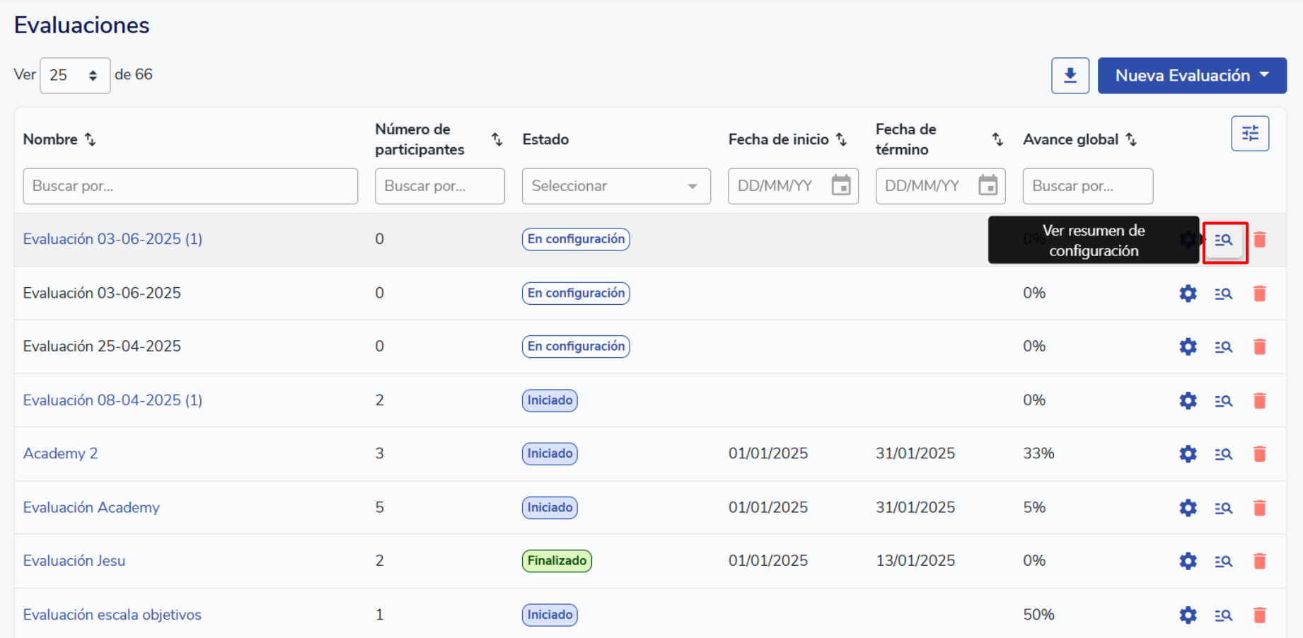Configuration summary in performance evaluations