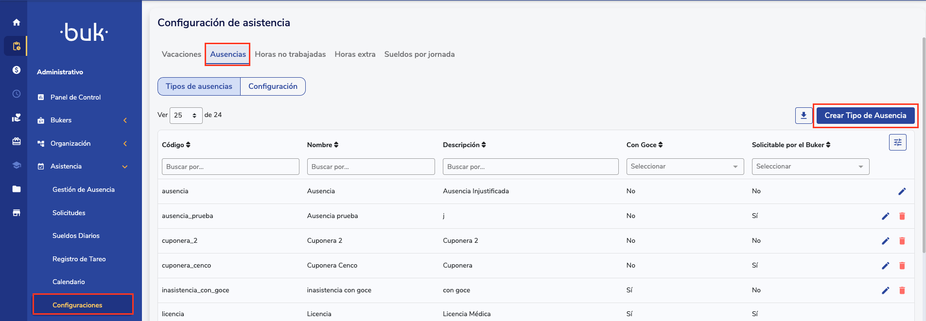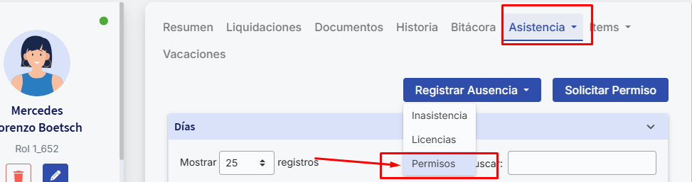 To implement integrated benefits with permissions, first check your permissions configuration in Administrativo > Asistencia > Configuraciones > Ausencias