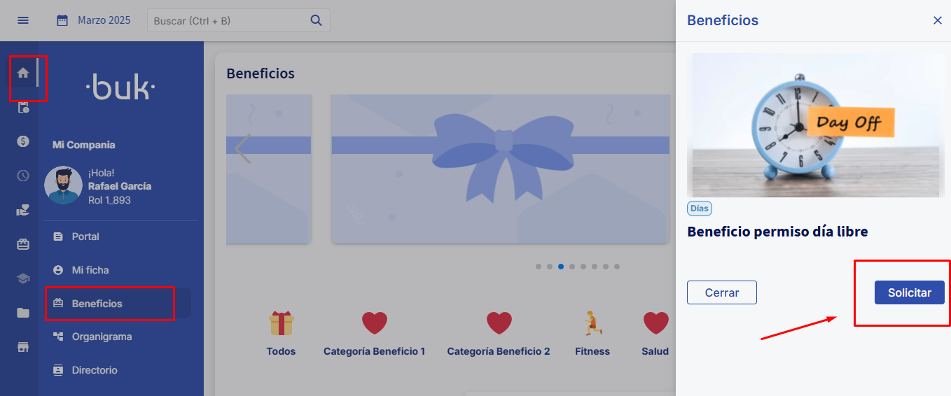 Finally the benefit will appear as follows in the employees' portal to be requested: