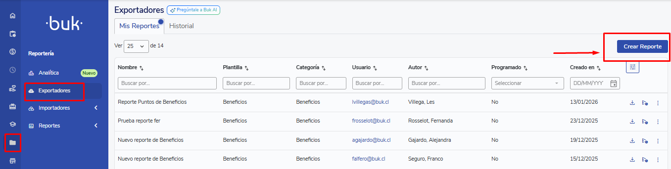 Important: You can only create exporters if you have the necessary permissions. If you don't see this option in your account, ask whoever manages the platform to review your permissions. Once created, you can reuse, edit, or download your exporter whenever you need it.