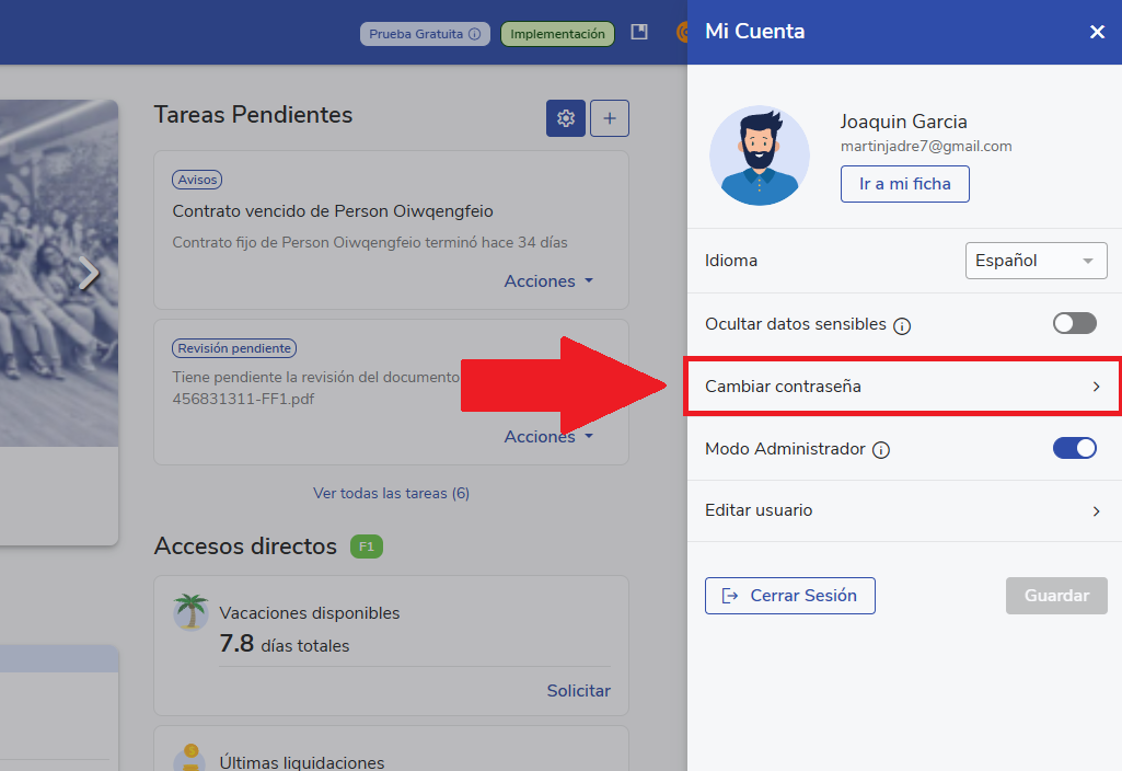 Create yournew passwordand confirm the change. It must have a minimum of 8 characters and other conditions determined by the company.
