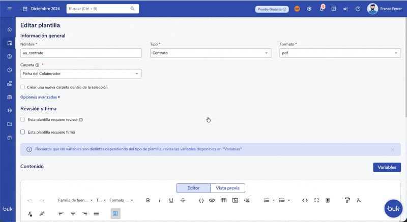 - Preview:When previewing a template (without real data), a "flaky" or default QR (which leads to Buk's link) will be shown to simulate how the final document will look.