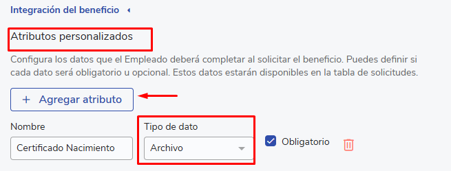 Create your benefit as usualHow to create a benefit?, and within theCustom attributessection, click onAdd attributesto add aFiletype attribute.