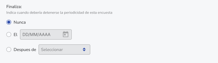 Example of an error:If your survey lasts 20 days but you request it to repeat every 14 days (2 weeks), the system will ask you to adjust the dates to prevent the second administration from starting before the first one ends.