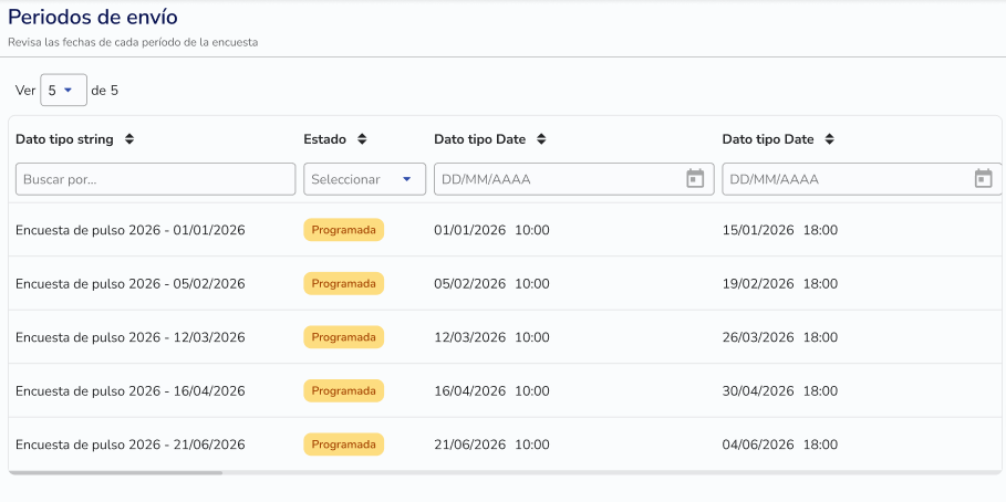The functionality ofRecurring Surveysallows you to automate the administration of measurement instruments over time. Instead of creating a new survey each time, you can schedule a series of repetitions (periods) that will run automatically according to the frequency you set.