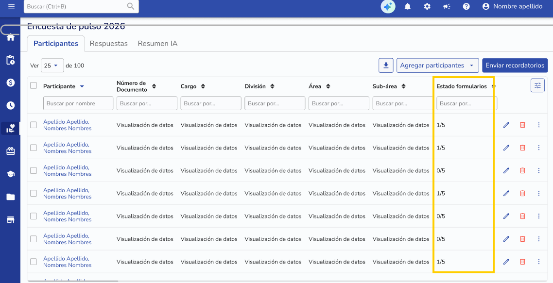 So that collaborators do not confuse the emails, each repetition will have an automatic name composed of:Survey name + Start date(e.g.Pulso de Clima – 01/03/2026). For you, as administrator, it will still be a single survey managed from one place.