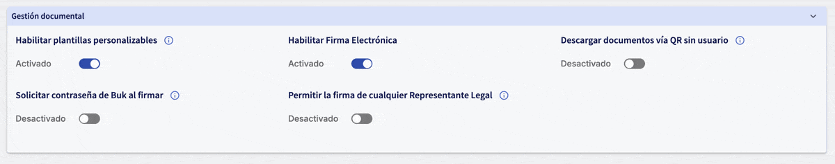 - Integrar la configuración con la configuración general "Permitir la firma de cualquier Representante Legal", que habilita o desactiva la firma abierta.