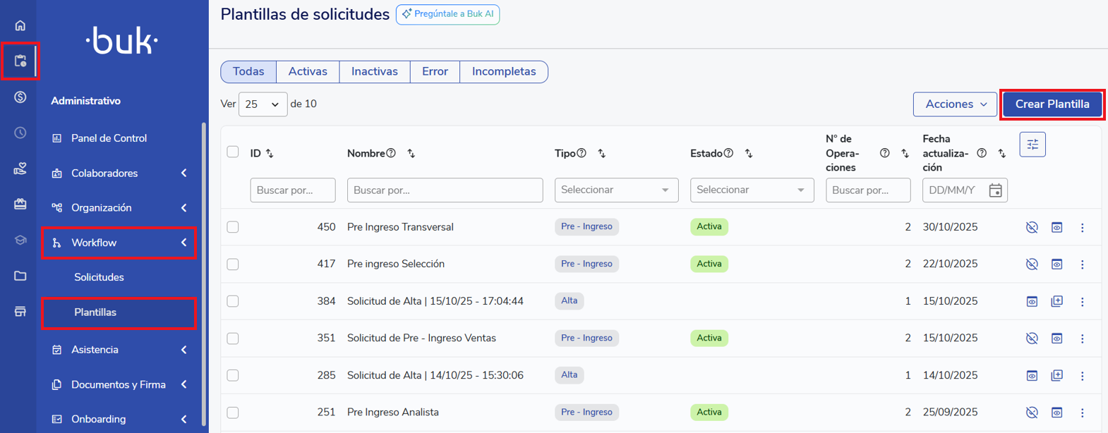 Plantillas de procesos de selección