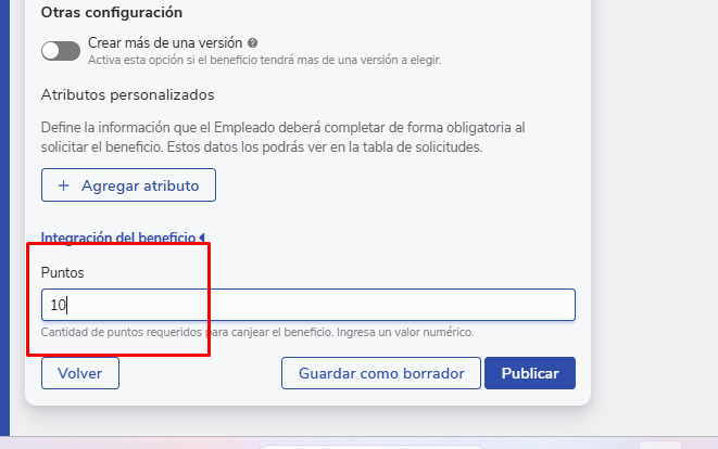 Puntos de beneficios: Es el monto que se descuenta del saldo de un colaborador cuando se aprueba su solicitud de beneficios.