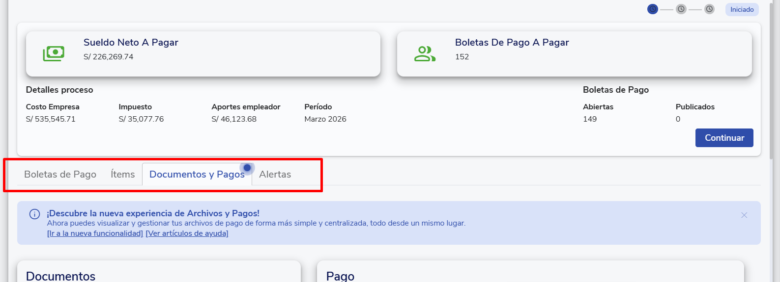Documentos y Pagos: muestra los archivos del proceso de nomina
