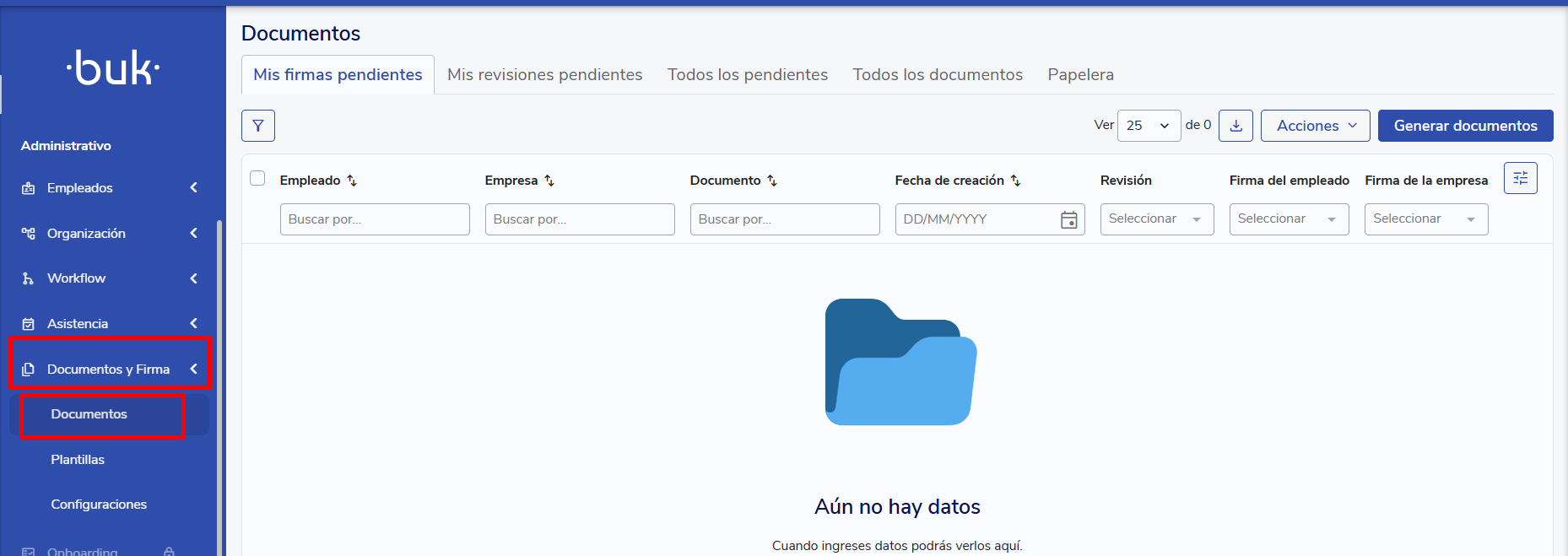 Primero deberás dirigirte al Módulo Administrativo >> Documentos y Firma >> Documentos: