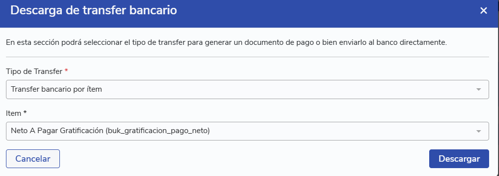 4. Generación de transfer bancario del adelanto de gratificación