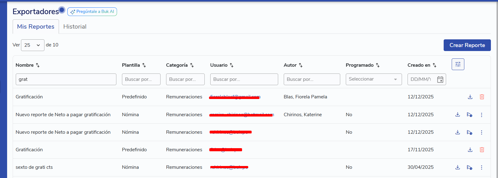 Si decides guardar, el informe aparecerá en el listado de Mis Reportes y estará disponible para ser descargado las veces que lo necesites: