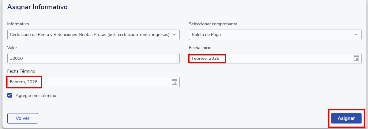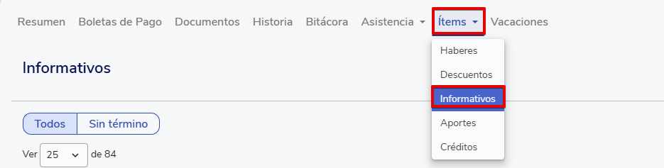 Para realizar el registro de estos conceptos en Buk, se deberá seguir la siguiente ruta: Ficha del colaborador > Pestaña Items > Informativo > Asignar Informativo.