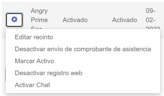 Podrás visualizar el listado de lugares de trabajo que posee tu empresa, cliquee el símbolo de engranaje del recinto en el cual deseas activar el comprobante y luego selecciona “Activar envío de comprobante de asistencia”.