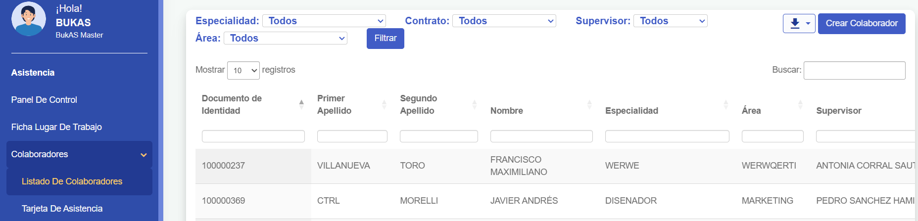 Ve a Colaboradores >> Listado de colaboradores. En el botón de descargas, selecciona "Exportar" para descargar la plantilla y completar los datos solicitados.
