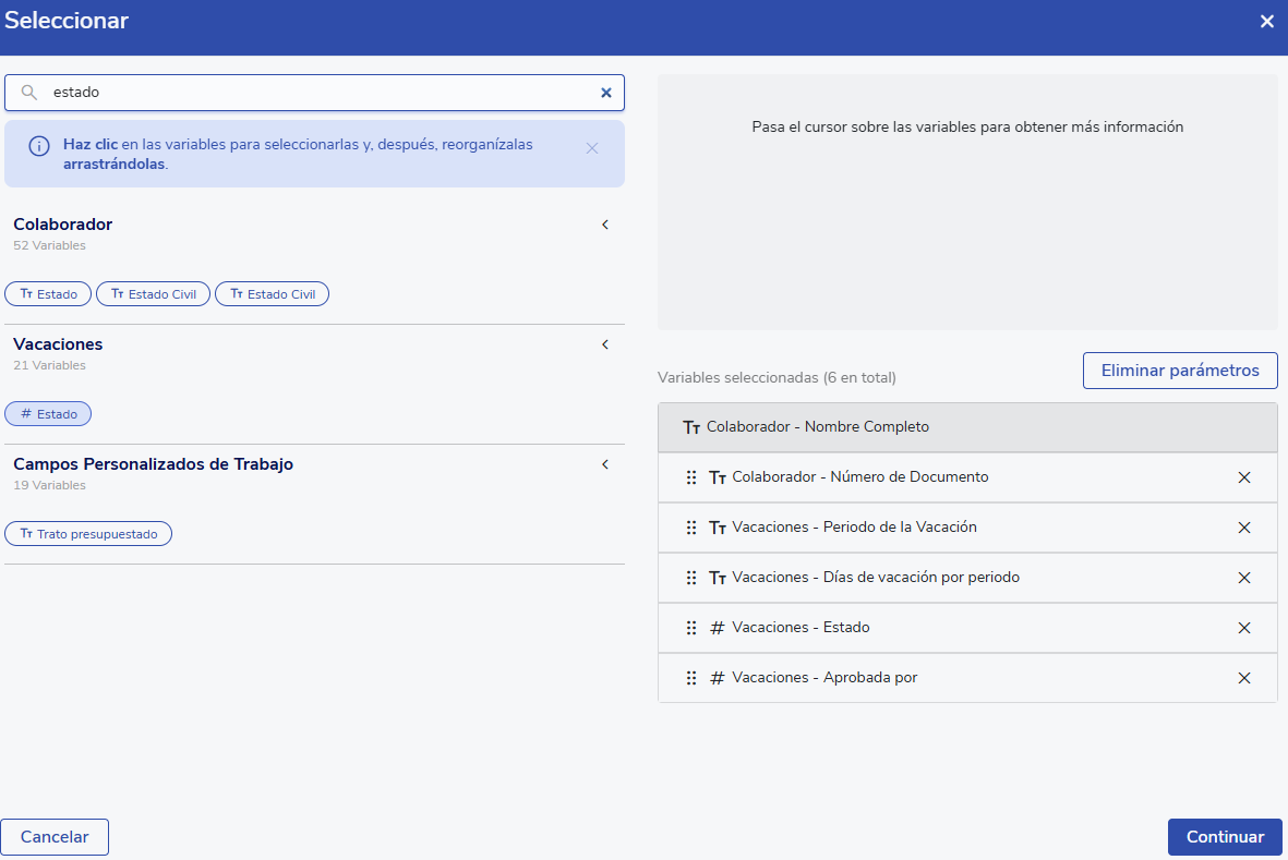 Con la plantilla Registro de Vacaciones obtendrás un detalle de tus colaboradores. Ten en cuenta que figurarán todos los registros, aún cuando estos no hayan sido aprobados o todavía no se haya hecho el goce efectivo de las mismas.