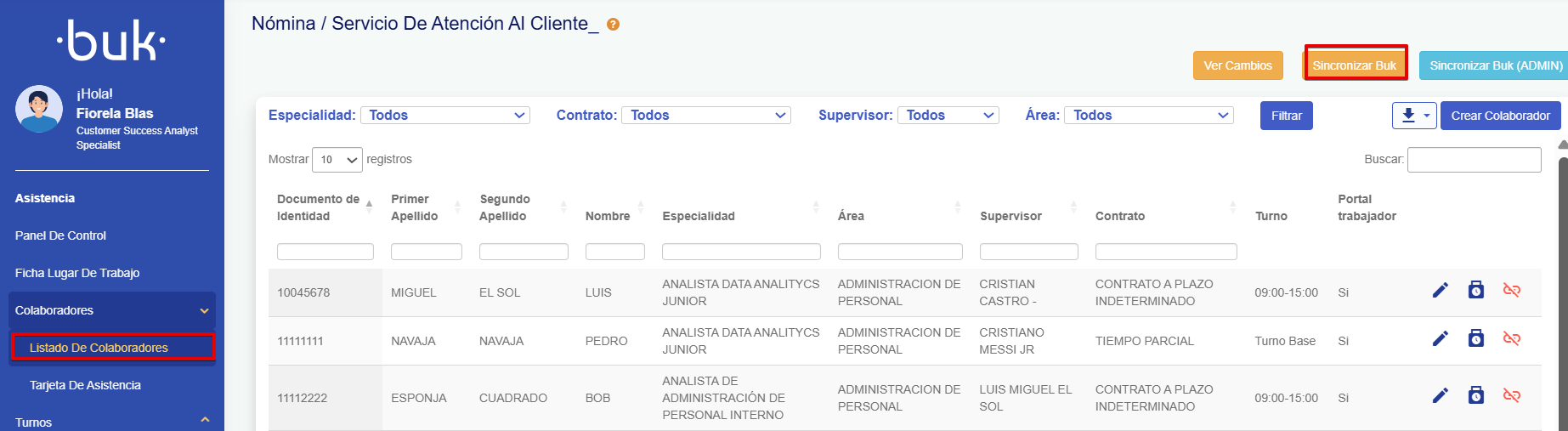 Colaboradores → Listado de Colaboradores → Sincronizar Buk