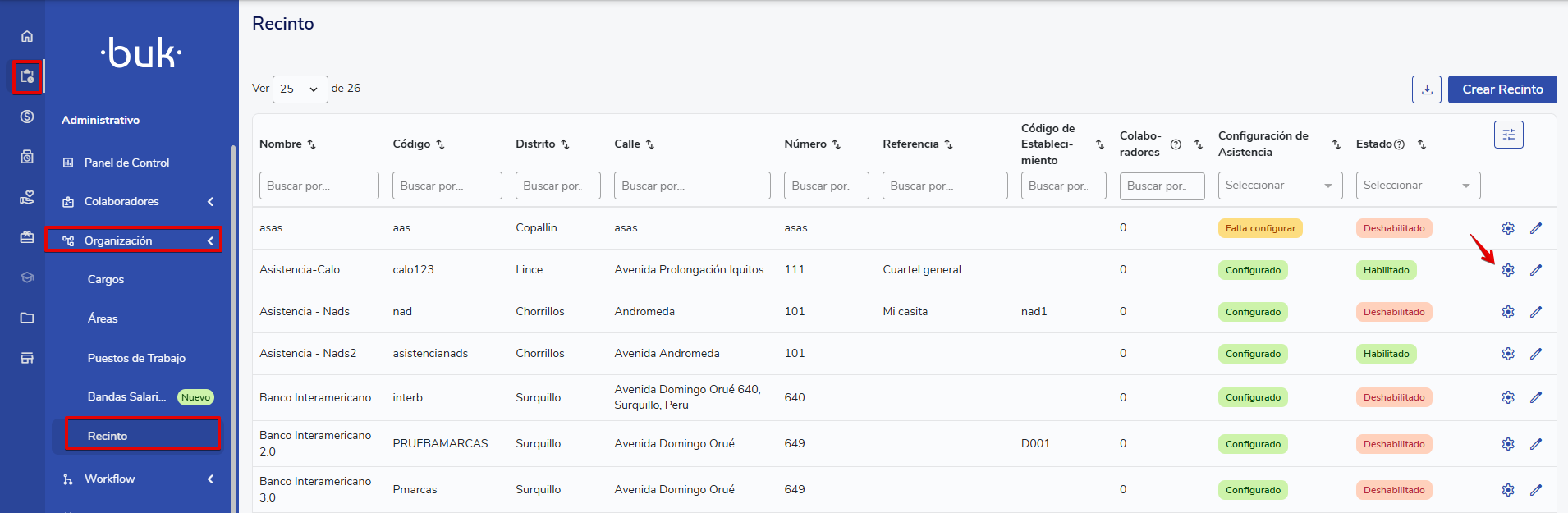 Si gestionas tus recintos desde Buk Asistencia, sigue estos pasos: