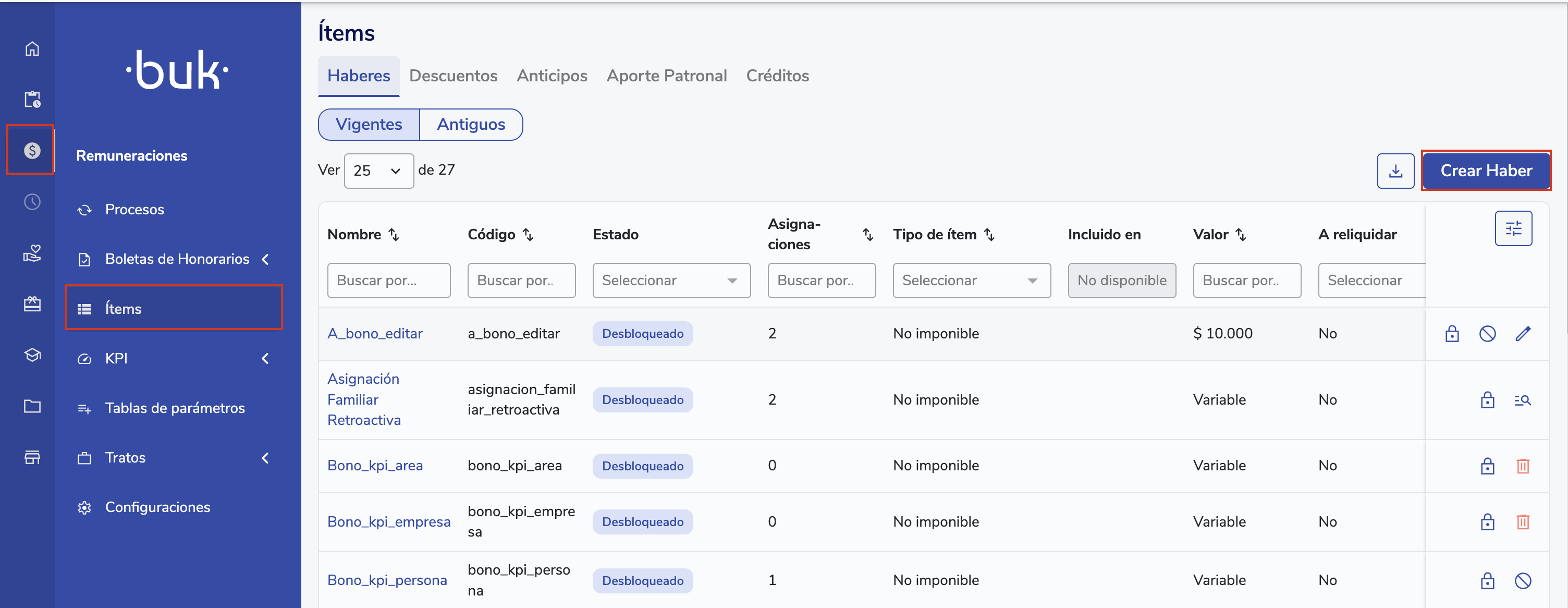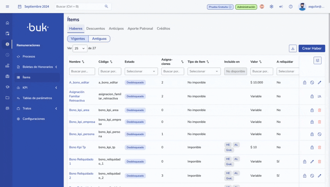 Ya puedes acceder a una nueva vista mejorada en Remuneraciones > Ítems, que unifica todas las secciones de Haberes, Descuentos y Otros en un solo lugar.
