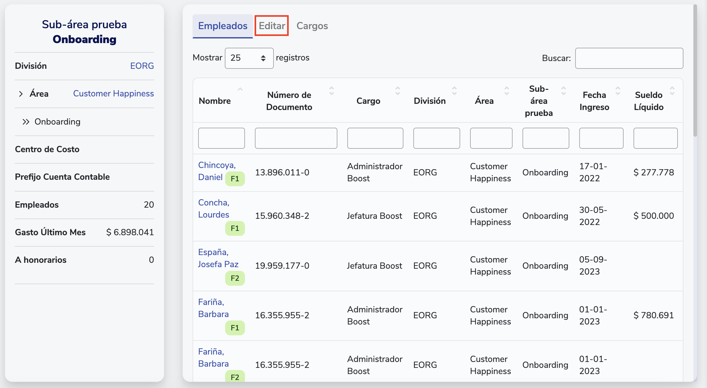 - En la pestaña Editar, asigna el Centro de Costo correspondiente y guarda los cambios.