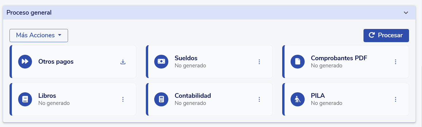 También podrás actualizar las las boletas de pago de forma masiva. Para ello dirígete a "Remuneraciones" luego selecciona "Procesos" y finalmente presiona el botón "Procesar".
