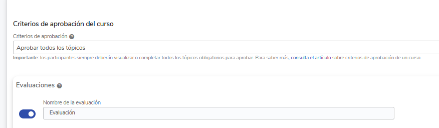 Este artículo tiene como finalidad guiar a administradores y súper administradores en la correcta configuración de los criterios de aprobación al momento de crear cursos e-learning. Se detallan sus características, recomendaciones de uso y consideraciones técnicas, con el fin de alinear la evaluación del aprendizaje con los objetivos pedagógicos del curso.