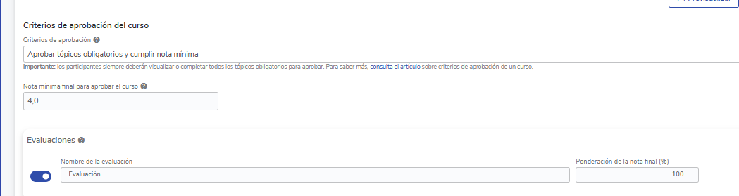 - Las evaluaciones que no sean determinantes para aprobar no deben estar configuradas como "evaluación final".