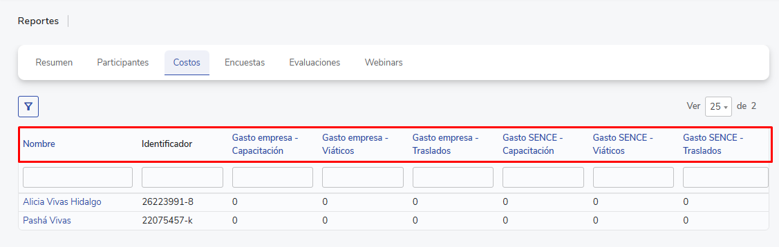 📌 Importante: Si haces clic en “Descargar Excel” desde esta pestaña, el archivo incluirá todas las secciones del reporte en diferentes hojas (Resumen, Participantes, Costos, Encuestas y Evaluaciones).