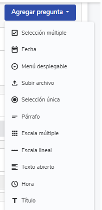 Puedes seleccionar entre distintos formatos de preguntas para adaptar el instrumento a tus necesidades: