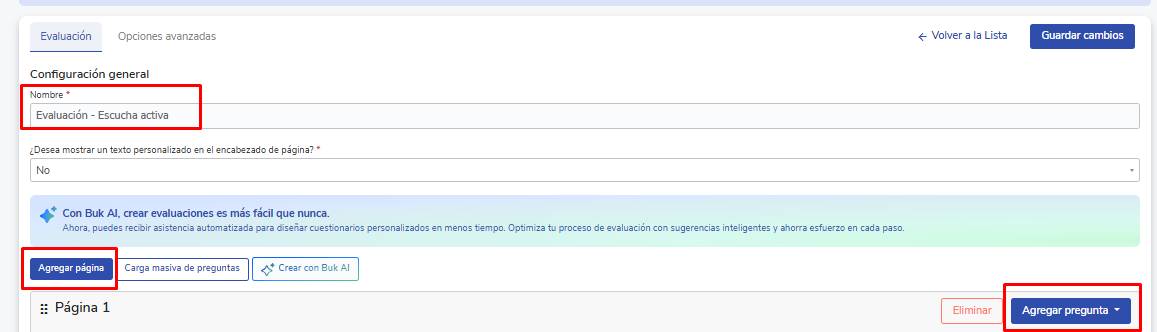 💡También puedes crear evaluaciones de forma automática con la ayuda de Buk AI. Para conocer cómo usarlo, te invitamos a leer el siguiente artículo.