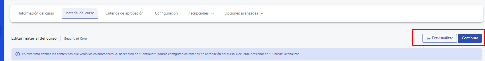 - Categoría: selecciona la categoria que quieres desplegar el curso en la vista del colaborador