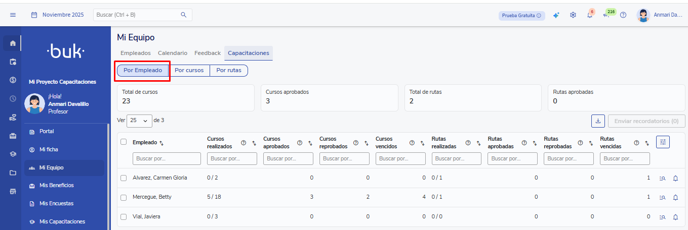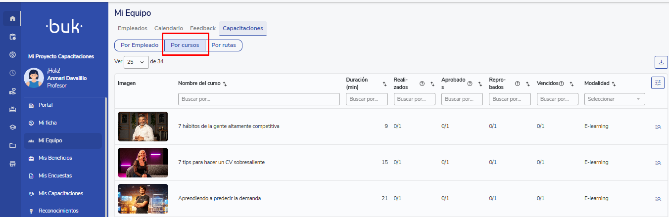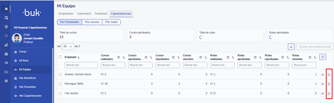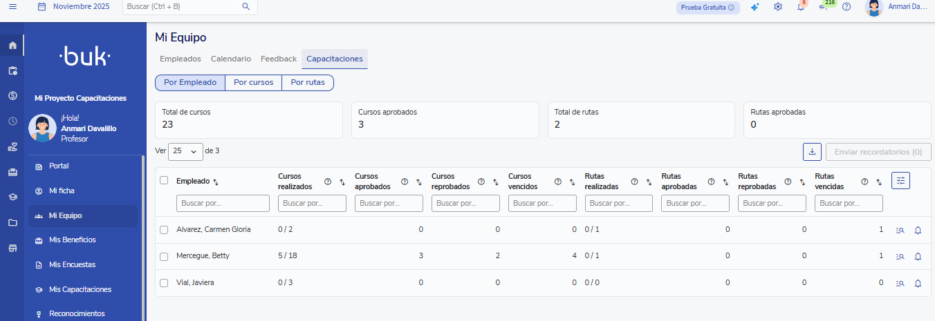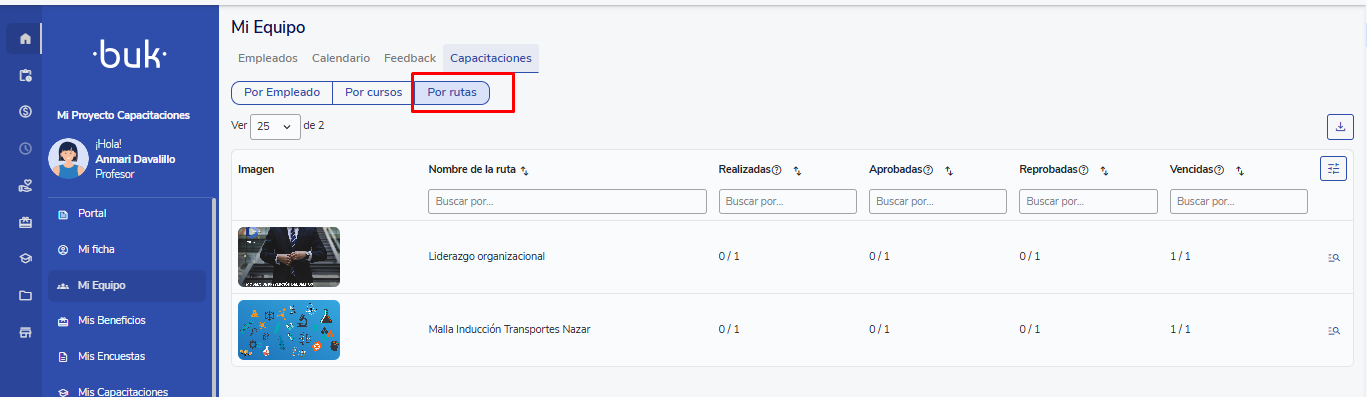 ¿Cómo puedo ver las rutas de aprendizaje de mi equipo en Buk?