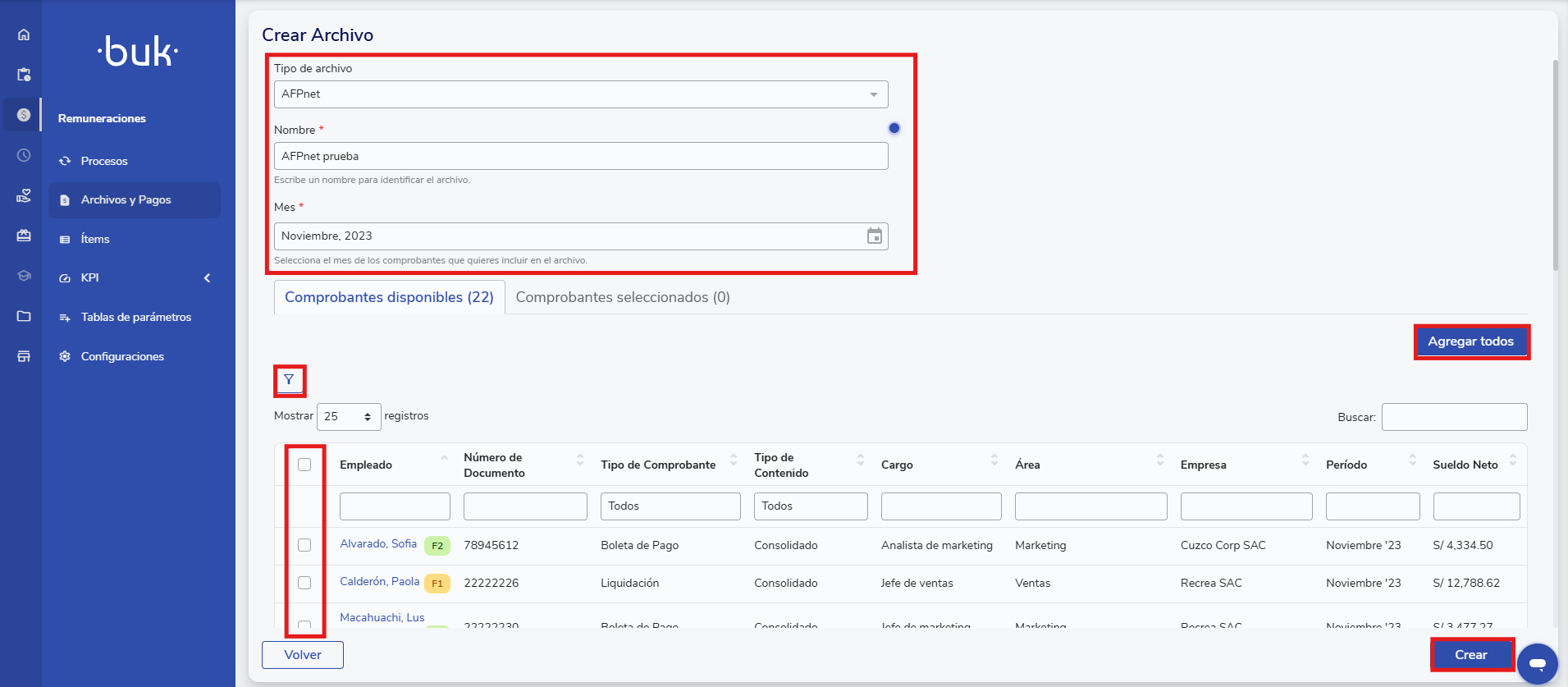 AFPnet es una herramienta esencial en la gestión de remuneraciones que permite a las empresas cumplir con las obligaciones relacionadas con los fondos de pensiones. Con Buk, puedes generar los archivos necesarios para AFPnet de forma flexible y eficiente, optimizando la creación de documentos clave que se adaptan a las necesidades de tu organización.