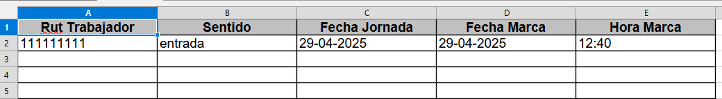 En la pantalla "Agregar marcaciones," encontrarás las instrucciones sobre el formato que debes utilizar para completar la plantilla de importación.