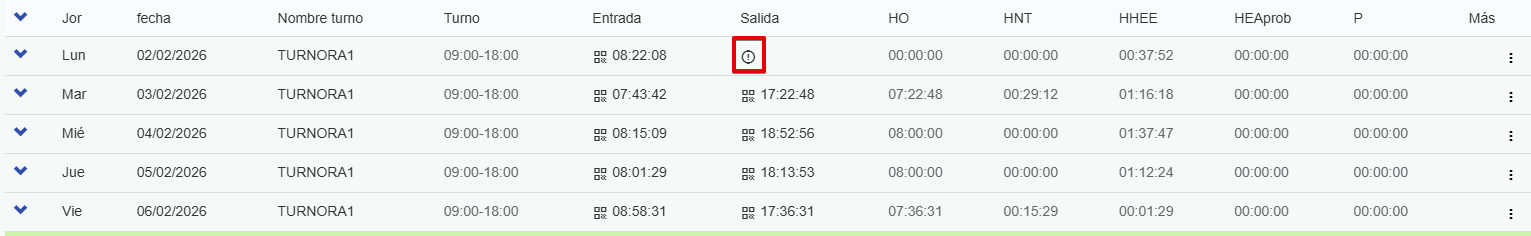 Una vez que guardes la marca manual, aparecerá la hora ingresada con el ícono de un lápiz: