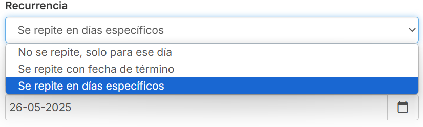 También tienes la opción de modificar los turnos pasados, estableciendo una recurrencia si fuera necesario.