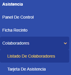 Lo primero que debes hacer es dirigirte al menú de navegación ubicado en el costado izquierdo de la pantalla y seleccionar la sección "Colaboradores" y luego "Listado de colaboradores".