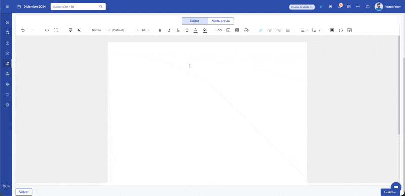 Antes, los usuarios debían conocer el nombre exacto de las variables Liquid (por ejemplo, {{empleado.nombre}}), lo que generaba dudas frecuentes y errores al crear o modificar plantillas.