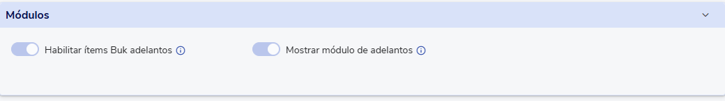 Post contratación de adelantos de sueldo en tu plataforma BUK en verás activas las siguientes configuraciones en “Parámetros Generales”(solo los podrás visualizar mas no modificar):