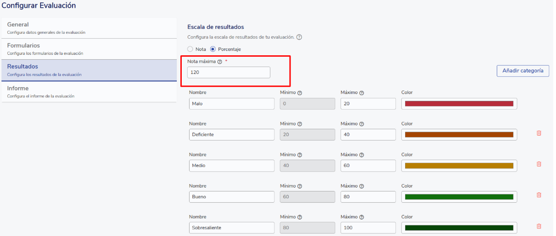 - La escala de resultados debe configurarse siempre pensando en el resultado final de la evaluación, no en el sobrecumplimiento.