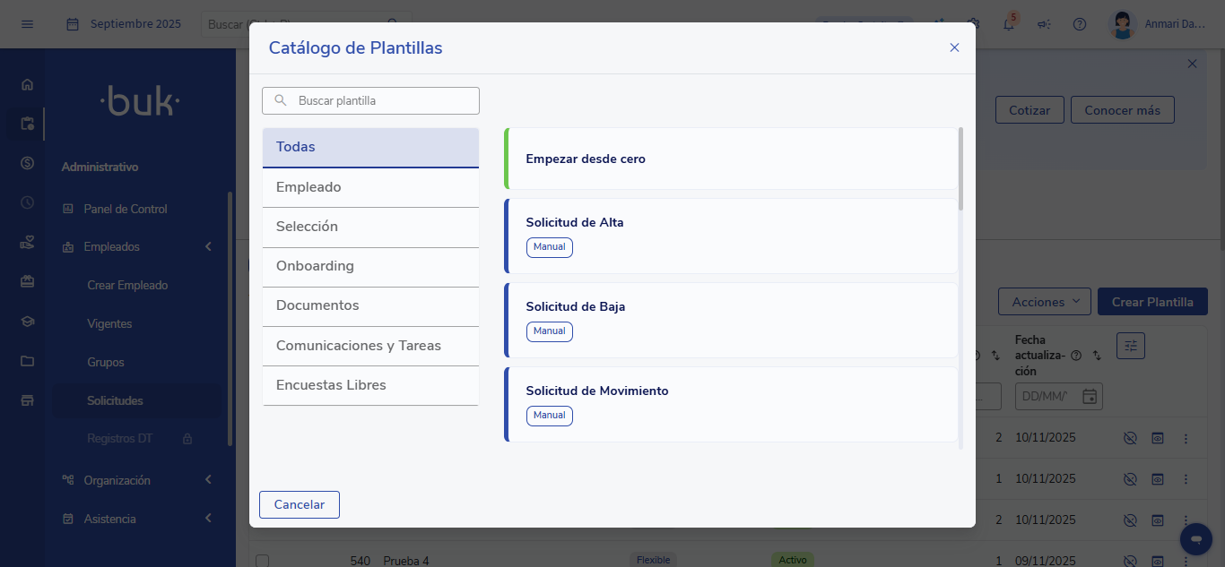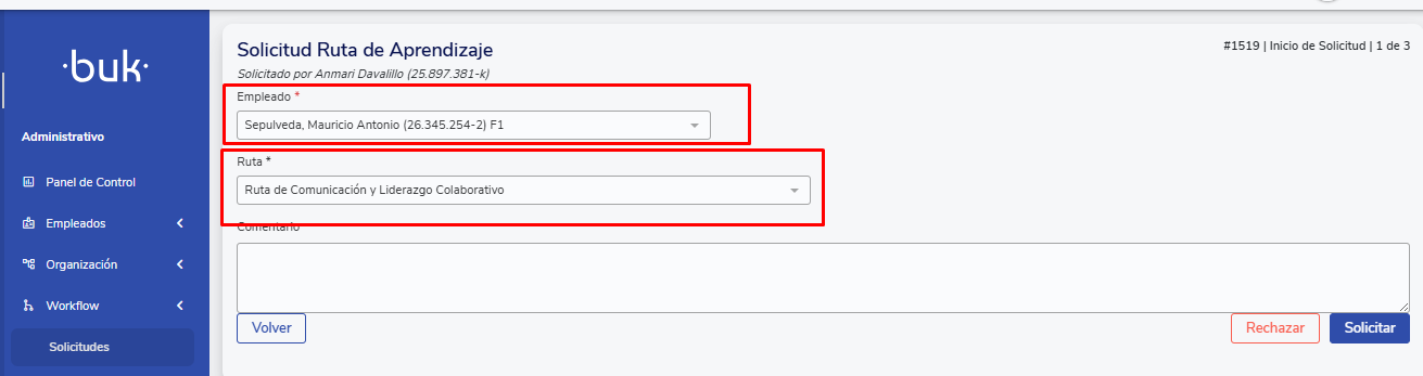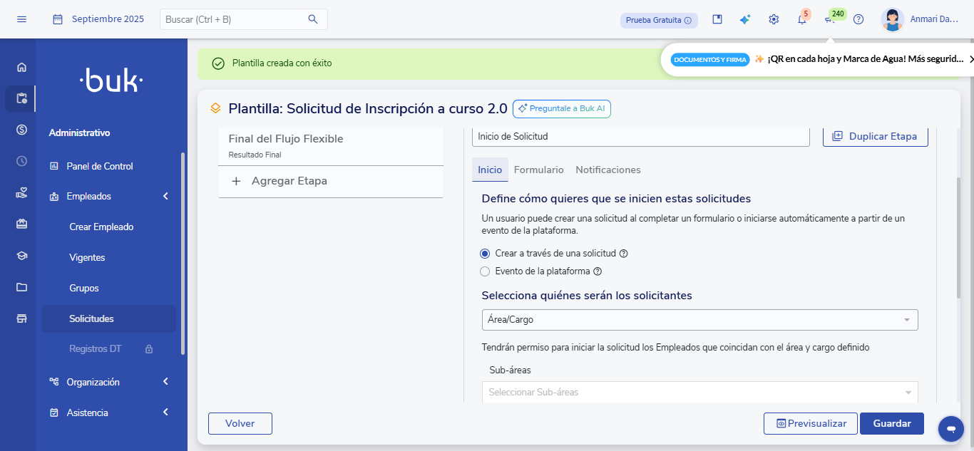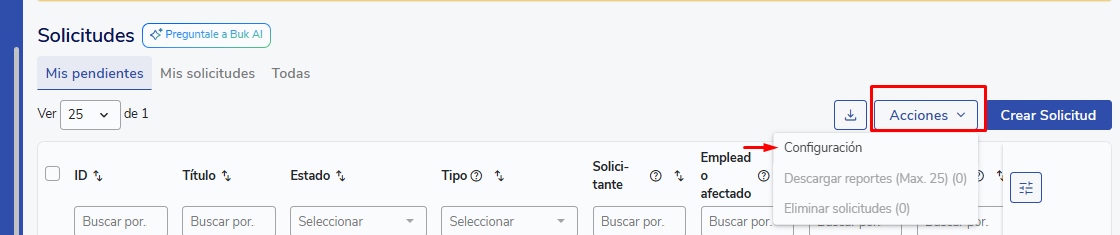 Una Solicitud es un flujo flexible que se inicia cuando un usuario completa un formulario dentro de Buk.