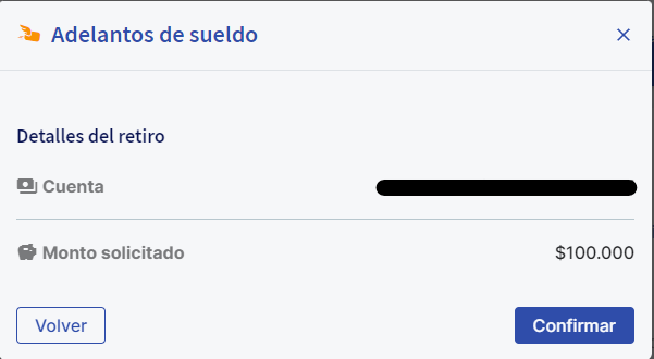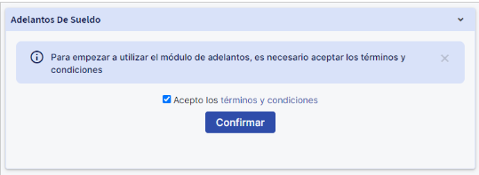 Si es primera vez que solicitas Adelanto de sueldo, deberás aceptar los términos y condiciones (única vez), después de eso, podrán visualizar el monto disponible para retiro.
