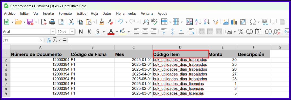 Para que el motor de cálculo identifique correctamente los días computables de cada colaborador, debes utilizar los siguientes ítems informativos en tus cargas: