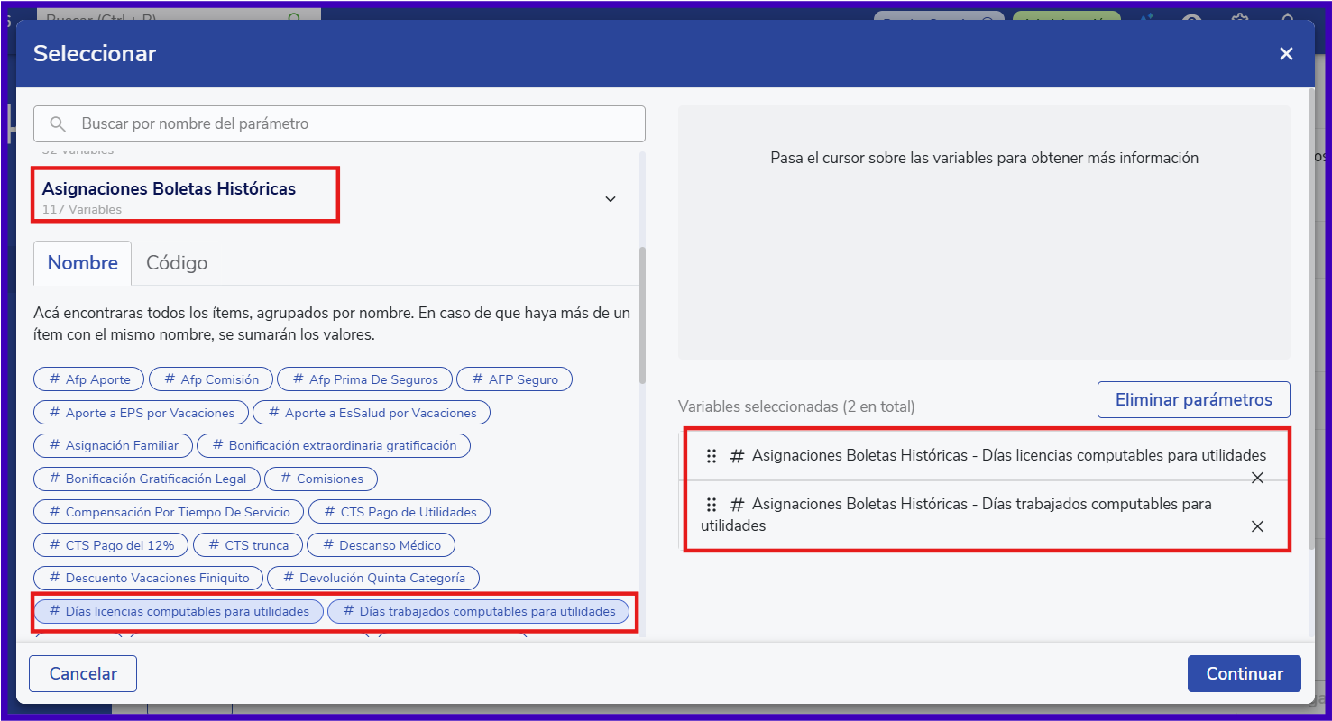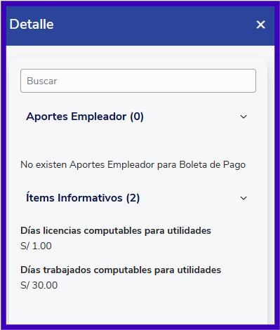 Estos ítems están configurados para no ser visibles en la boleta de pago, por lo que el colaborador no podrá revisar los días cargados para considerar en su pago de utilidades.