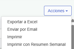 Desde el botón acciones podrás exportar esta información, exportar en excel, enviar por email o imprimir.