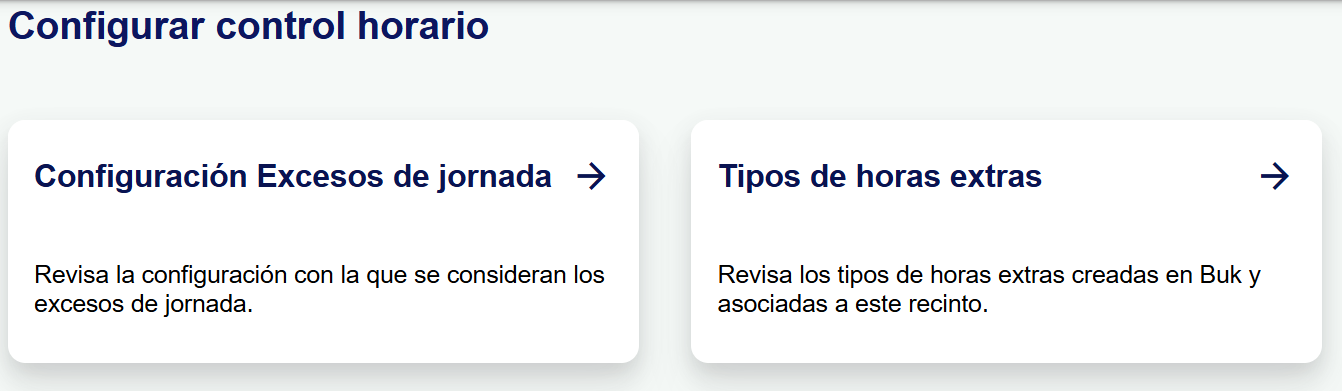 En la tuerca de configuraciones, dentro del menú "Control Horario", encontrarás la opción "Tipos de horas extras".