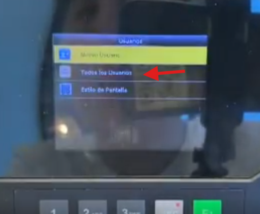 Dentro de menú “Usuarios” y nuevamente con las flechas de desplazamiento ubicar la opción “Todos los usuarios” y luego presionar la tecla M/OK para acceder.