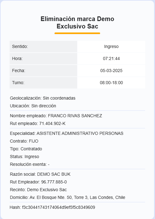 Habiendo aprobado o rechazado una marca, el colaborador recibirá dos comprobantes: el nuevo comprobante de marcación y un comprobante con los cambios realizados